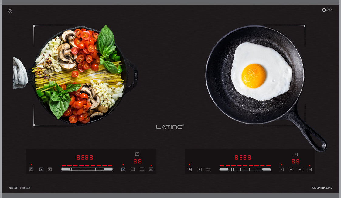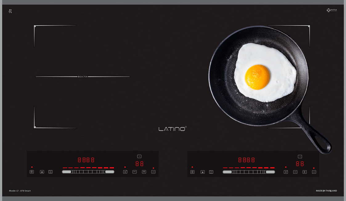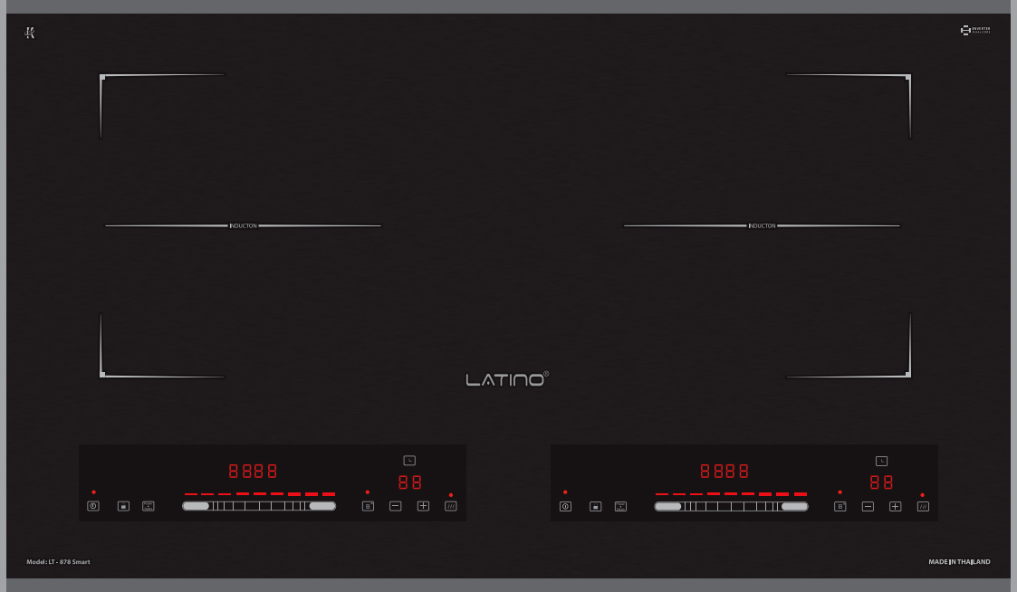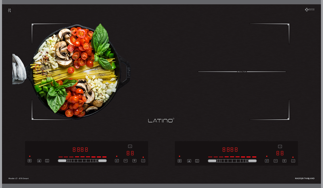 - Bếp từ Latino LT-878Smart thiết bảng điều khiển dạng Slider Control độc lập cho từng vùng nấu cùng nhiều tiện ích được cài đặt sẵn. Siêu nhạy, dễ dàng điều khiển và phù hợp với nhiều lứa tuổi.